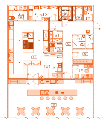 Esitatakse ruumide ratsionaalne paigutus, mis järgib järjestikust teed ladustamisest, eeltöötlemisest, kuumtöötlemisest ja väljastamisest kuni külastajate ooteruumini. Määratakse kindlaks ladustamise, tootmise ja abipindade optimaalne ja proportsionaalne suurus. Koostatakse ruumide laiendus koos põrandapindadega.