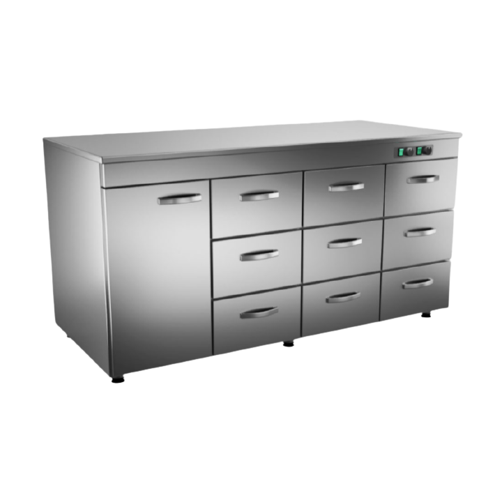 - Üheksa sahtlit mahutavad 9x(GN1/1 150) GN-konteinereid